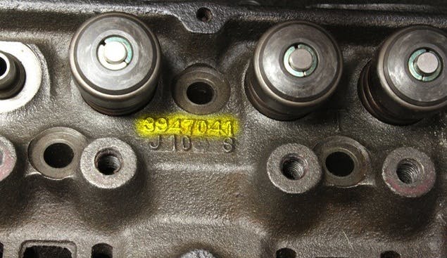Keep in mind that cylinder heads are interchangeable from side to side. A component like an exhaust manifold can only be correctly installed on the left or right side of the engine. For components like these, a basic rule of thumb – odd numbers for left side components and even numbers for right side components – exists for both part numbers and casting numbers for parts that are cast. Parts that are not mounted in pairs, can have part numbers that are either odd or even.