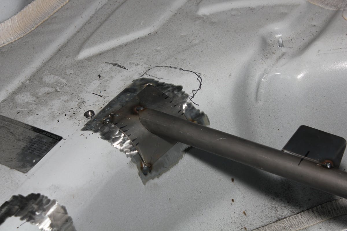 When it comes time to actually mount the parachute to True SStreet, we will be sure to show you the dos and don’ts of mounting the “laundry” to the car so you can be sure of a solid connection. For this installment however, we’ll only be showing you the installation of the bracket that holds the parachute when packed. So with our bracket in hand, the guys in the tech shop got started with the mounting of our parachute’s mountings.
