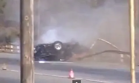 After lifting, the car slides back and forth a few times before violently smashing into the guard rail. From there the car flips over and lands on top of the roof. We hear the scream of a woman in shock, and the cursing of a gentleman in shock as well. Instantly there is a crew of track members running to the car, checking on the driver. After a brief few seconds, the driver climbs out of the car, unharmed but will most likely be sore the next morning.
