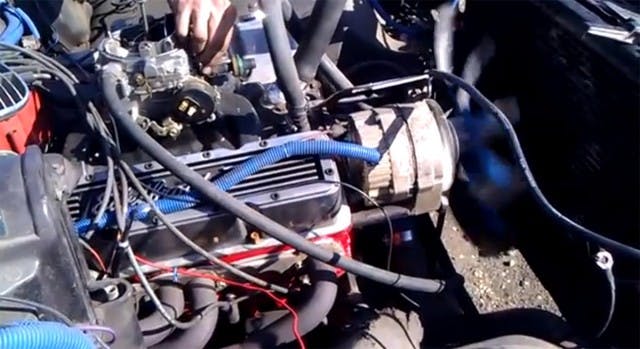 Despite the issues, the good ol’ boys working on this heap have a mission to complete – keeping the car running long enough to dial in the carburetor and make sure there are no leaks. We spotted a myriad of problems just from watching the video – an electric-choke carburetor with no electricity hooked up to it, a fan shroud that is long gone, and numerous exhaust leaks can be heard. With all of that in mind, the most important problem surfaces right at the end – the car won’t turn off, meaning that there is a definite wiring issue. In fact, it has to be shut off by disconnecting the alternator from the electrical system. Who needs an ignition switch when you can just unwrap the wiring and shut things down?