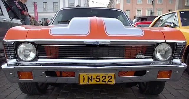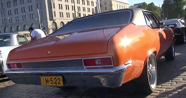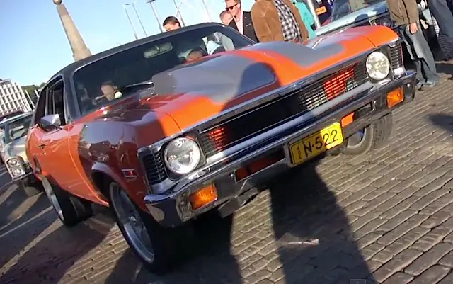 Located at Helsinki Cruising Nights 2014 in Helsinki, Finland, this Nova’s vibrant orange paint howls for attention. But it isn’t only the paint and the deep-dish rally-style wheels that are tucked underneath the body that give it its aura.