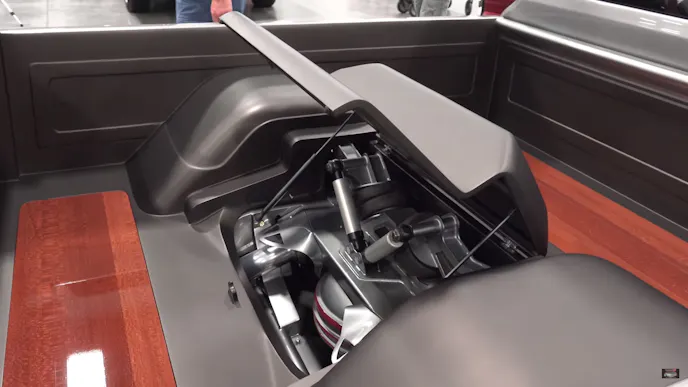 Randy didn’t want to have the big inner fenders showing or the tops of the tires when you open the hood.” The hood now opens like a regular, modern hood, but it’s just the center section.