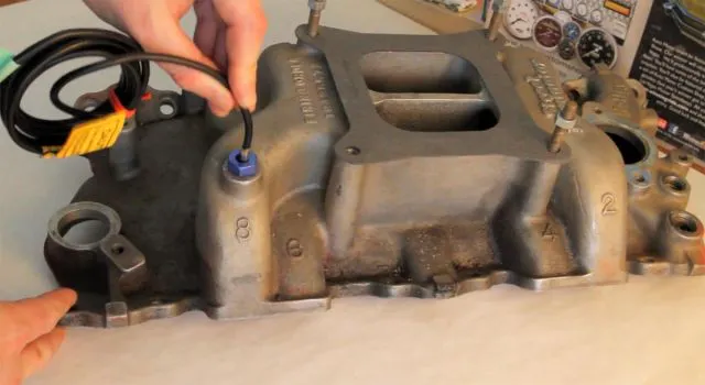 A mechanical temperature gauge operates very differently from an electric version, as there is an actual probe that gets inserted into the intake manifold of the car, filled with ether gas that expands when subjected to temperature changes.