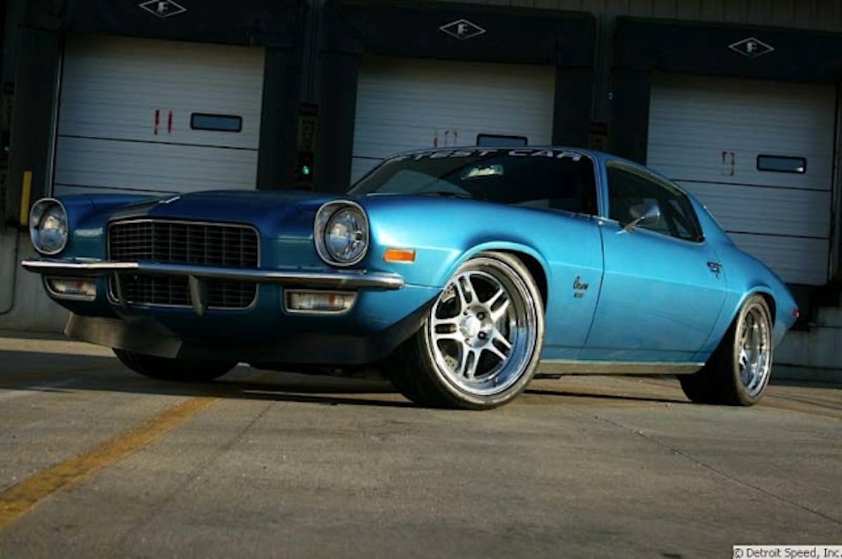 While this car looks fairly stock appearing from the outside, the car has little left of its original components. A healthy 6.2L all aluminum L92 motor rests between the frame rails with a five speed trans bolted behind. Naturally the car has a full Detroit Speed suspension components underneath, combined with their mini-tub kit for the rear. With their front clip installed, it allowed Tucker to install a 10-inch wide rim on the front to plant the car in the corners. A set of Baer brakes helps the Camaro come to an abrupt halt on the Daytona road course.