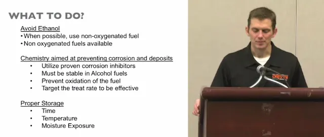 The bottom line from Speed’s discussion is to avoid ethanol fuels if you have a carbureted application. If you can’t, then use corrosion inhibitors to help protect the carbs. He also warned about proper storage and minimizing the exposure to moisture.