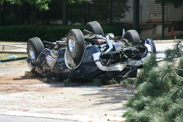 Police received a report that a 1967 Camaro SS had been involved in a rollover crash around 12:42 p.m., which resulted in the car resting on its roof with a downed tree resting on its undercarriage. When emergency personnel arrived, they found the driver trapped inside the car with gas leaking from the rear of the vehicle.