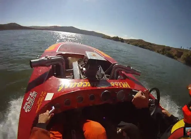 What seems to be a small test day on the lake for some full throttle passes, unfortunately, turns out to end rather quickly as the oil breather eventually gives up the ghost; spraying oil through the filter. After a couple warm up laps to get the oil up to temperature, throttle-man Scott “Hollywood” Schatz gets into it at the 4-minute marker. However, “Hollywood” has to shut it down quickly after the 5:18 minute marker, thankfully on his return line in to the dock.