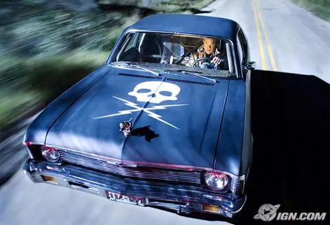 Nonetheless, there’s one hell of a car crash to be seen. Our featured clip comes from Tarrantino’s “Death Proof” segment and involves stalker stuntman “Mike” played by Kurt Russell. He gets his kicks knocking off his victims by ramming them with his  flat black 1970 Nova SS with skull and cross bones and a chrome “rubber ducky” hood ornament.