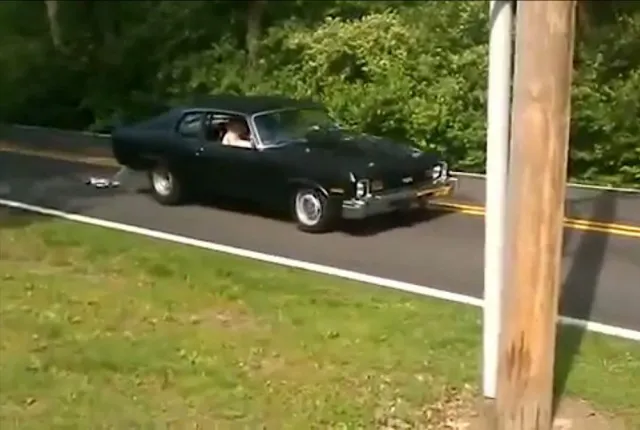 Seeing that Nova appear out of the driveway and onto the street to setup for a smokey mess was exactly what every wedding needs with flare hanging from the back bumper and all.