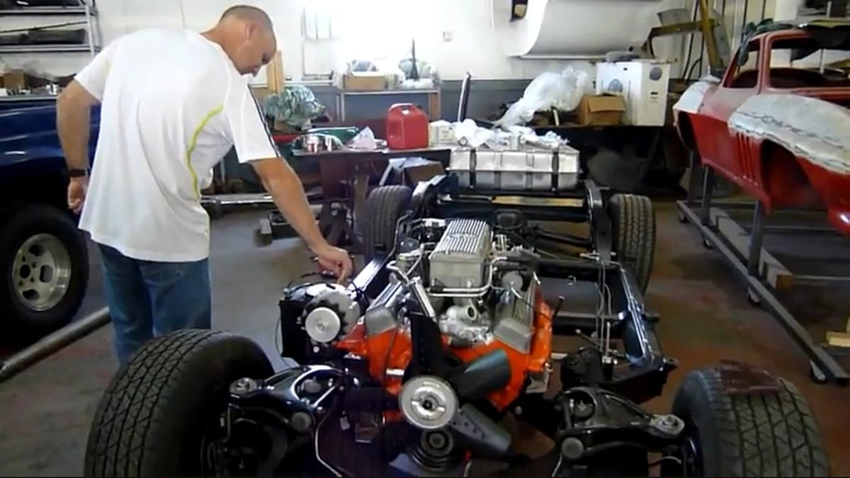 The guys at Muscle Cars of Texas also tell us that this car is very near completion, and the original Daytona Blue fixed roof body is now back on the frame (The red C2 body in the back ground of the video belongs to a ’65 big block). The owner plans to get the car certified by NCRS and hopes to achieve Bloomington Gold status with the restoration. Keep your eyes peeled for more info on this very rare C2 in the near future.