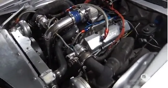 What he found was this street legal Camaro with a whopping 1,500 street able horsepower. What’s even better is that the owner took him for a ride! Upon the start up you can hear the fuel pumps run for a second before the engine fires. The engine that roars to life is a twin turbo charged small block Chevy that runs off 100 octane ethanol. The engine itself is a Dart block and heads with a special ground cam, with a set of big Master Power turbos. We also note that the engine is fuel injected with several computer controllers in the car giving the owner full customization.
