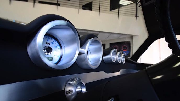 So what we have is a Camaro that is obviously a Camaro, but altered in such a way that the big 500 cubic-inch LSR engine can stretch its legs. It’s a gorgeous ride littered with all kinds of high-tech gizmos, including some instrumentation and electronics from Dakota Digital.