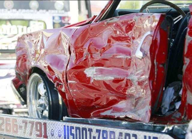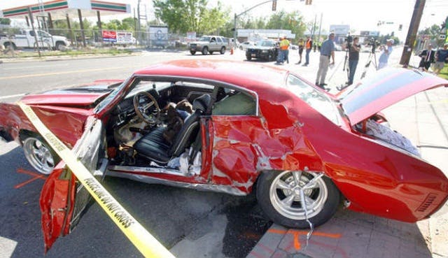 While we’re glad that a criminal appearing to be up to no good is now off the streets, the severe damage done to the Chevelle is a tragedy. We’re not sure if the car could be repaired, but the pictures of the bright red beast don’t look too promising. That is one scratch, that won’t just buff out.