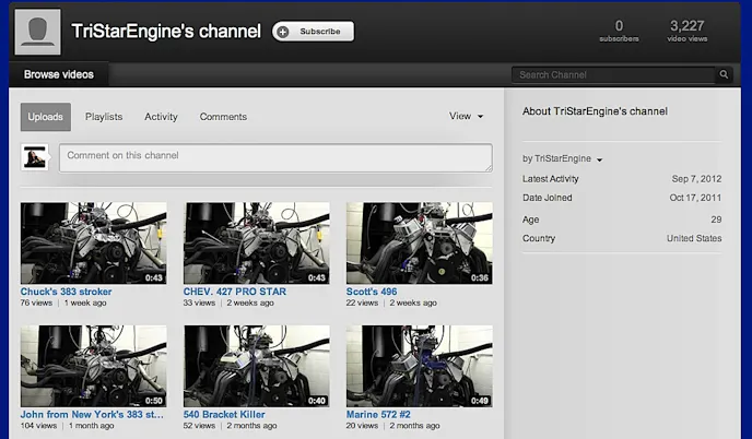In an effort to show their loyal customer and fan base some appreciation, Tri Star began utilizing YouTube to showcase their customers engine dyno testing.