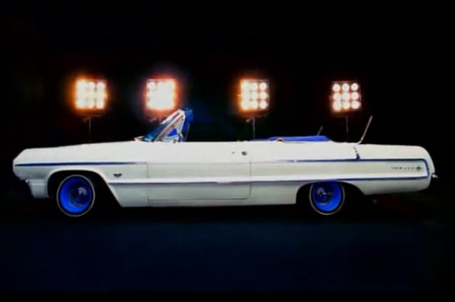 Admittedly, there is a third vehicle in the video: a ’60s Malibu, resting awkwardly in the background. But that thing is just another lowrider destined for an untimely flip onto its roof.