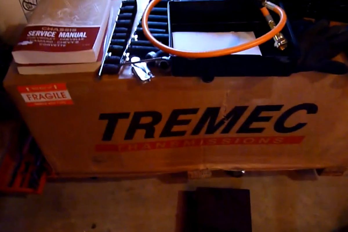 Chris teases his audience with the Tremec 6-speed transmission nearby, as yet unopened. He mentions that it should mesh well with the Moser piece, and in 6th gear at 80 mph, be running at a low 1800-1900 rpm. Hell yes.