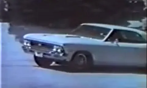 The announcer boasts that the Chevelle has “A new kind of suspension, to unwind every curve, and smooth every road.” We see the suspension cycling through its range of motion, showing that this car rode smoothly for 1966.