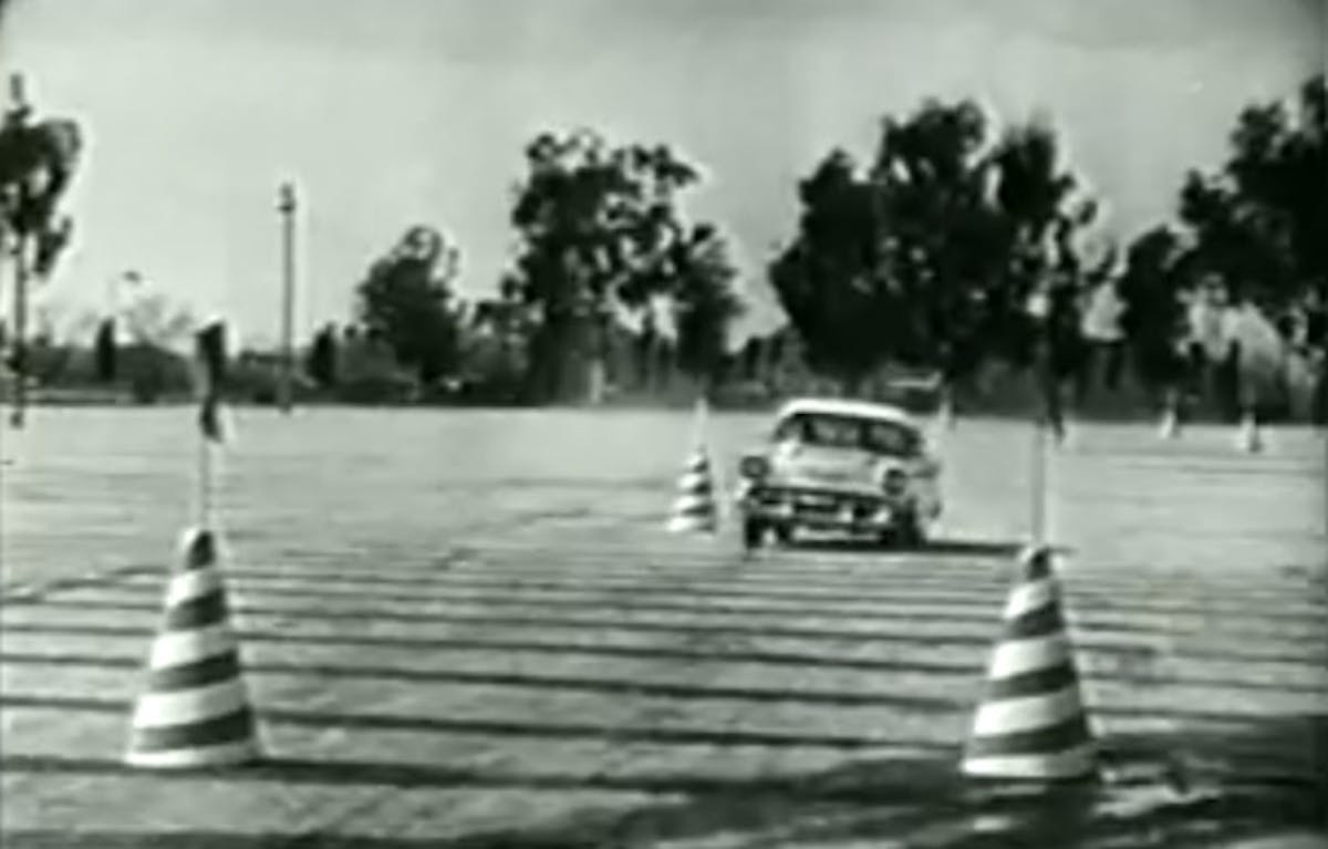 Our video shows the 1957 Chevy Bel Air “on it’s way to the world’s first auto decathlon.”
