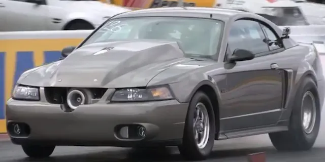 As for the implanted engine in the Mustang, the fullboost crew says, “Power comes from a 632cid big block Chevy V8 engine boosted by a large frame 106mm turbo. Traction has obviously been the biggest obstacle so far with the car running deep eights at over 160mph.”