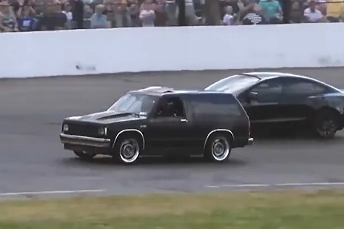 Watch This 1985 Blazer Take A Tesla To Gapplebees!