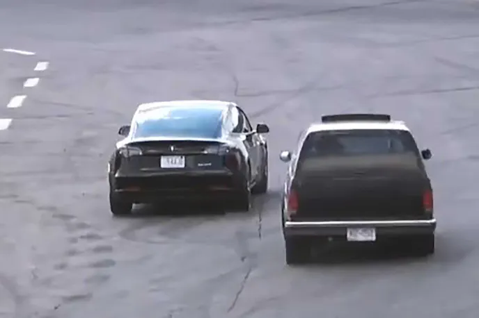 Enthusiasts of the antics that occur at this speedway are probably very familiar with this black Blazer. This vehicle, and its owner’s driving history, have been the subject of several Instagram posts and YouTube videos. It becomes painfully clear for the Tesla driver that this isn’t his opponent’s first time around this track. And, this Blazer has more than just a V-6 or inline-four pushing it around the corners.