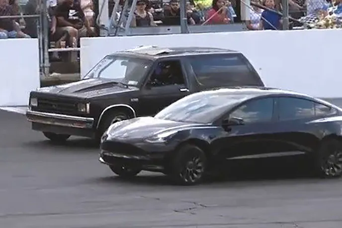 Watch This 1985 Blazer Take A Tesla To Gapplebees!
