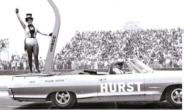 Patty was the first woman that George Hurst employed to market his floor shifter and speed products to the automotive marketplace. It was a marketing ploy Hurst came up with in which followed a basic formula, guys like hot cars also like hot-looking women. Put the two together and viola, Hurst shifters fly out of speed shops.