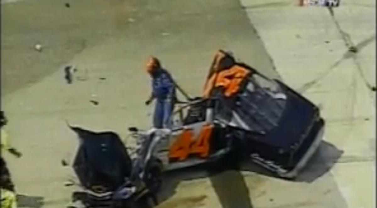 With only mere feet between a lucky break and tragedy, Sauter’s car hit the half of the wounded race car that Harmon was not sitting in. While track officials and fans were too stunned to move, Harmon got out of the car and walked away uninjured.