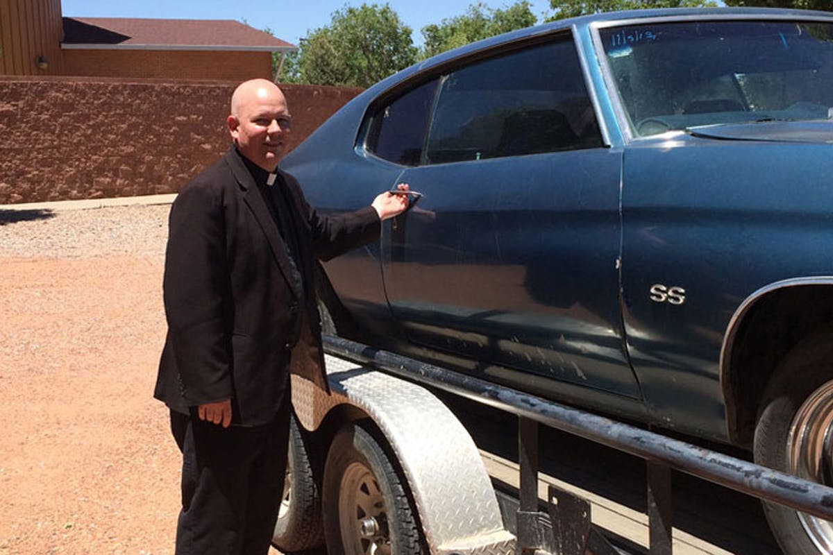 The Roman Catholic Diocese in Gallup, New Mexico, has a vocations director that has a long history growing up around cars. According to Father Keller, “I’ve always loved cars, and my first car was a ’64 Malibu SS. My dad taught me a lot – most of what I know mechanically – and I was in vocational school in high school, so we fixed up the Malibu and about a half dozen other cars. I sold my car when I went to college, and it was the worst decision I ever made.”
