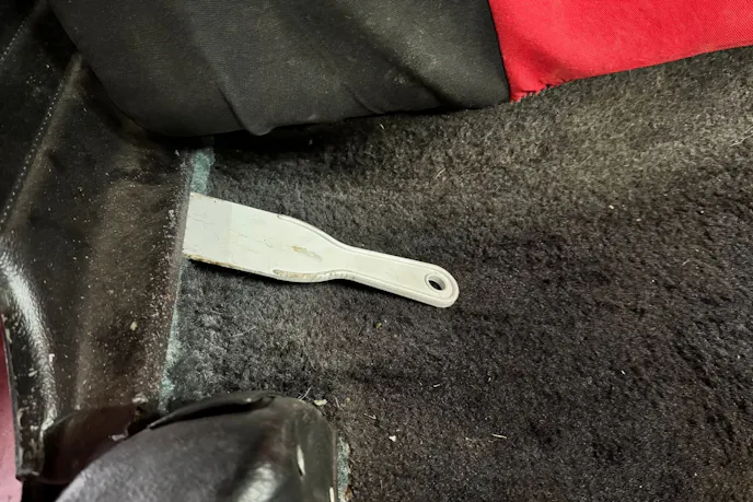 After curing, we reinstalled the original carpet over the freshly coated floor. The ATAC gave it a clean, even base to sit on and added a level of heat and noise protection that will make a noticeable difference once the car is back on the street.