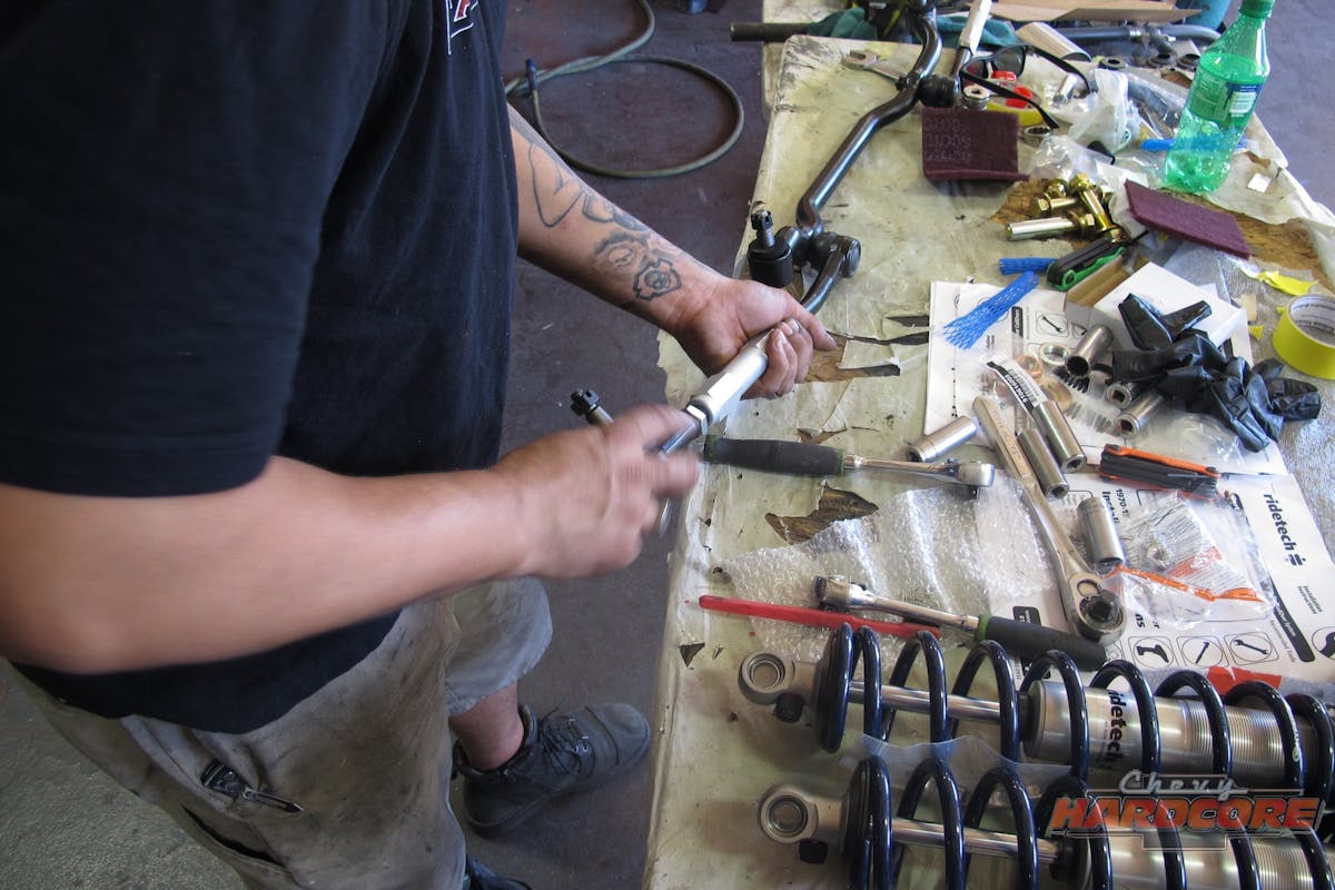 The kit includes a Tru Turn frontend kit, front MuscleBar sway bar, rear four-link, and four HQ-Series coilovers for each corner of your vehicle. The benefit of buying a complete suspension system is, it takes the guesswork out of trying to get all the parts to work together. Zip Simons of Street Metal Concepts in Sanford, Florida, believes in the validity of that statement and gave us the opportunity to follow along as the guys installed a Ridetech kit into a customer’s car.