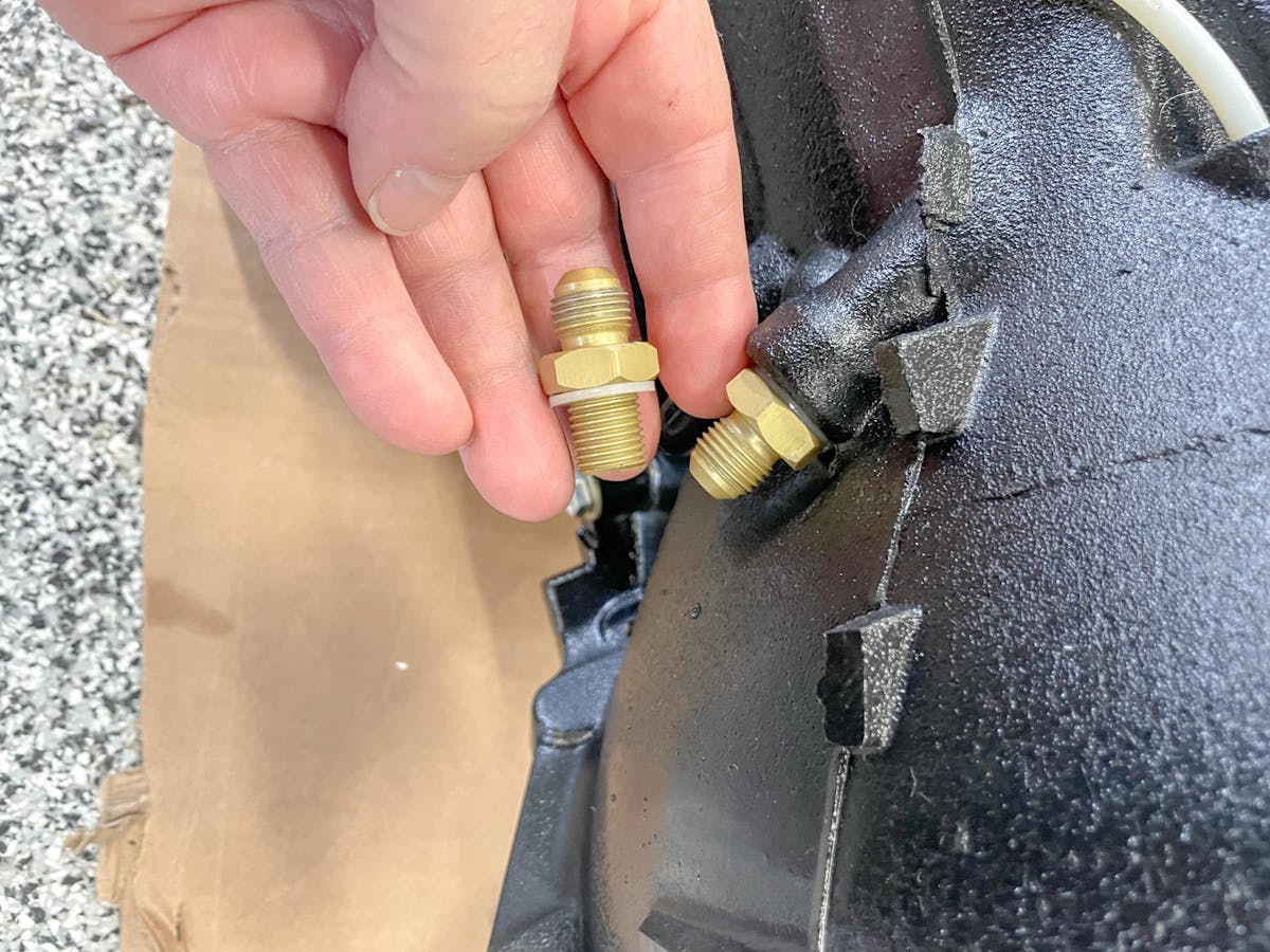 Plumbing is another issue with oil cooler installation. We picked Earl’s Perform-O-Flex AN hose for the application. It’s easy enough to use, but there are a couple of things we should point out. The fitting threads on the transmission case (Turbo 400) are NPSM threads. NPSM is similar to a common NPT thread, except NPT threads are tapered. NPSM threads are straight. The 1/4-18 NPSM thread to the -6 AN adapter fitting incorporates a nylon washer for sealing. ATI Performance Products offers a number of fittings designed to adapt AN fittings to a transmission case. The -6 AN fittings we used are part number 925137.