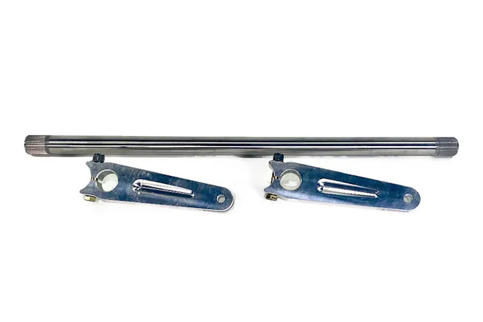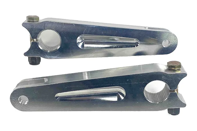 Another aspect that will change a bar’s effectiveness is the stiffness of the bar. Of course, the material the bar is made from will dictate the bar’s overall stiffness. The bar stiffness is also affected by multiple other factors. A larger diameter bar will be stiffer, and the longer the bar is, the softer it will be. The length of arms mounted to the bar also affects how stiff the bar will be. The longer arms will soften the bar’s stiffness, while shorter arms will increase the stiffness of the same length bar. Moser offers both six- and nine-inch arms that are splined to work with the company’s custom-length anti-roll bar stock.