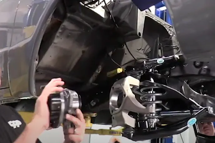 The biggest bonus with the one-piece bearing and hub in the modular spindle has to be the ability to run larger brakes, bigger wheels and tires, and still offer a better stance and improved performance driving. It is important to note that the X10’s steering geometry will remain the same as the stock steering geometry. There are some changes in the upper A-arm geometry due to the 2-1/2 inch drop.