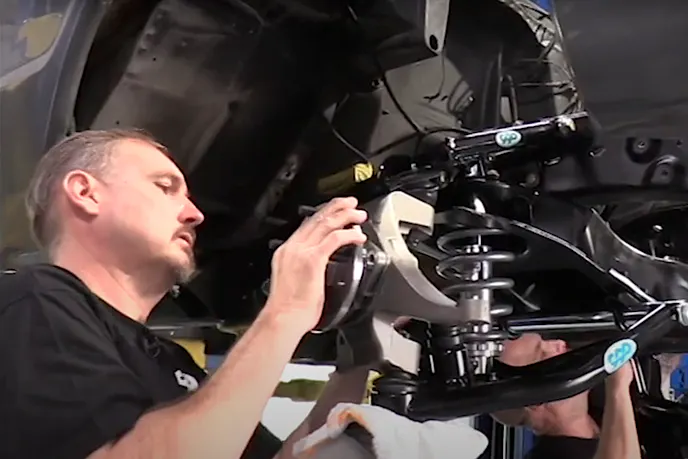 While CPP’s new X10 spindle has similar dimensions as the company’s original and very popular 2 1/2-inch drop modular spindle. The earlier version of the modular spindle is a traditional spindle design with an axle pin. The X10 modular spindle design is close to the modern GM sealed bearing hubs used on late-model full-sized GM pickup trucks and Corvettes. The sealed, captured-bearing hub makes the hub an integral part of the assembly’s rigid architecture.