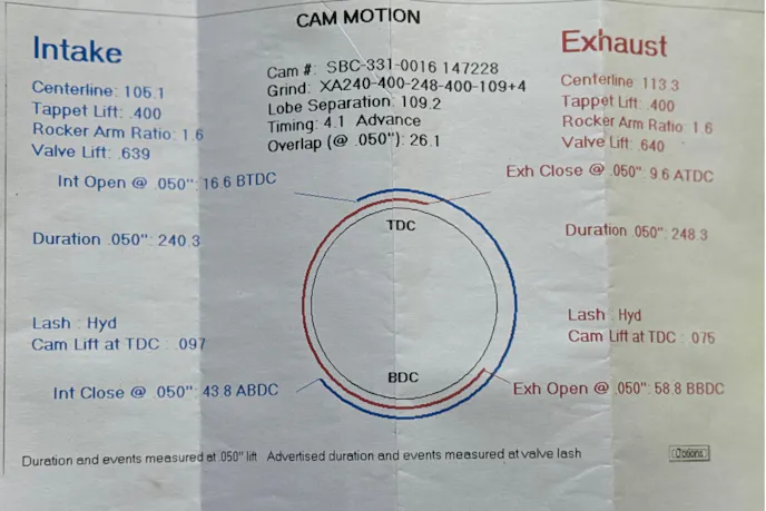 The challenge is that it’s rare for a generic cam to line up perfectly with a specific combination. With custom grinds available quickly, Bobby pointed out that it often makes more sense to call in, provide the details, and have a cam tailored exactly to your build. That’s what we did with Mighty Mouse, and it’s why we ended up with the specs we’re running now. The result is a cam that matches our 327ci’s displacement, compression, and intended use rather than a compromise that might work but never be ideal.