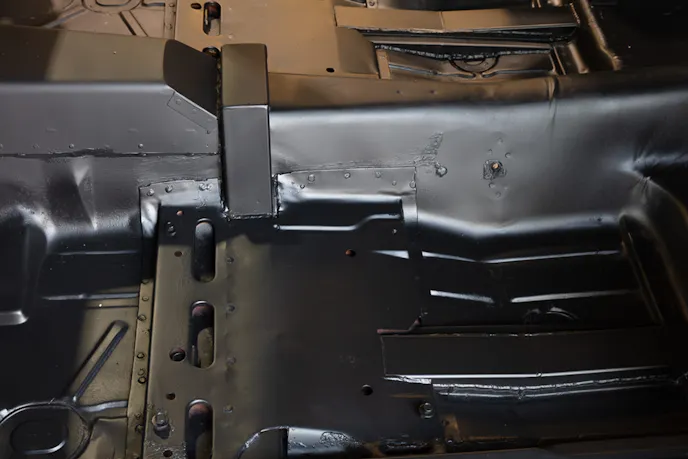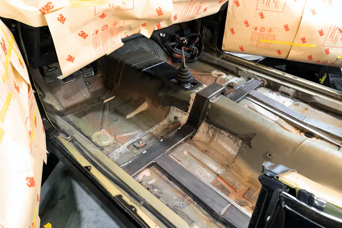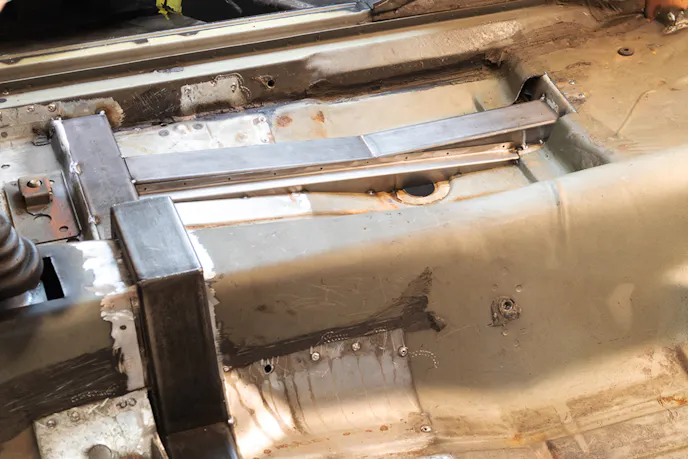 “It is a bit of a job to cut the floor,” adds LeClair. “You need to cut ‘windows’ in the floor to accept the crossmember and subframe connectors. It’s a little bit of a welding chore, but if you have good skills, a cutoff wheel, and a welder, you can do this job in your garage.”