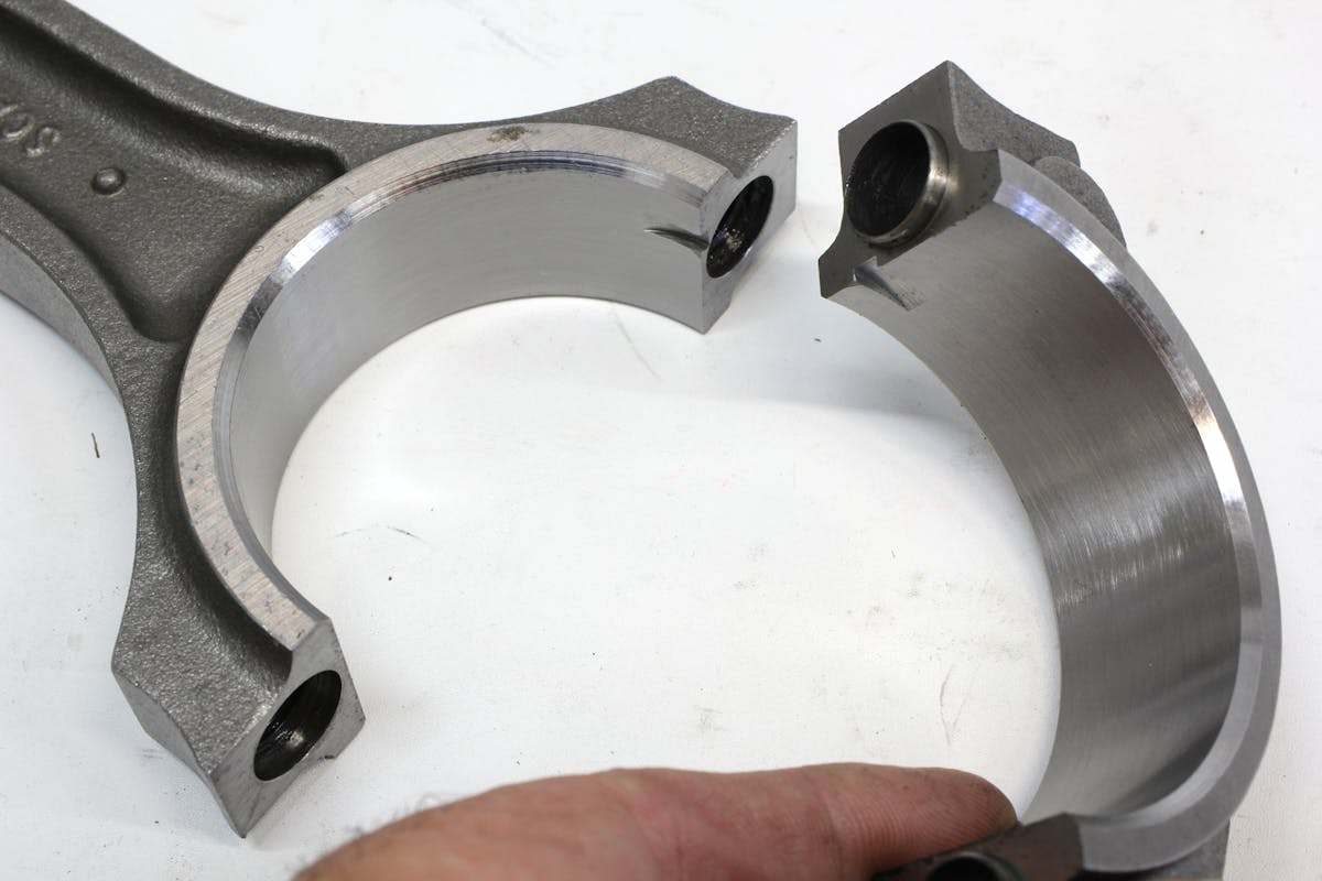 The combination of the strength of the 4340-steel connecting-rod material, the design of the big end of the rod, and the strength of the rod bolts all combine to create a rod that resists this enormous tensile load at higher engine speeds. This is also why RPM is the most important area to consider. Because of the loads achieved, a doubling of the engine speed means a four-time (4x) multiplication of the load. This is also why higher engine speeds require a stronger and higher-quality rod and rod bolt.