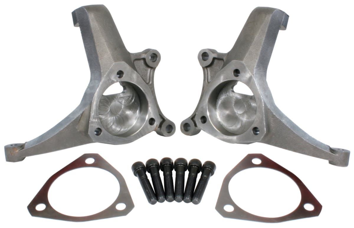 When it comes to wheel fitment, we’re told the wheel must be compatible with the Corvette brake caliper. They need to be at least 17 inches if using the 13-inch diameter rotors. Since these spindles are based on the C5 and later Corvette, there are a lot of different brake packages available. In the end, the wheel will need to be sized to the brake package being used.