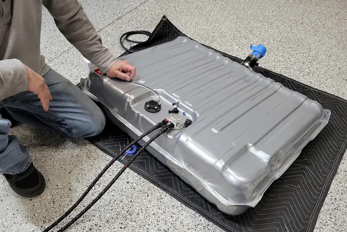 We’ve been doing some upgrades on our 1964 Chevelle lately. Some of the work, such as adding a new Tanks Inc. fuel tank, was in preparation for plans we had for the car. Adding the FiTech Ultimate Sync Dual Quad EFI system and Offenhauser cross-ram intake is the reason we upgraded to an in-tank, electric fuel pump. During the tank install, we also ran new pressure and return hoses from the tank to the front of the car. From there, we were able to use one fuel pressure regulator that would then feed both of the throttle bodies on our new, awesome-looking induction system.