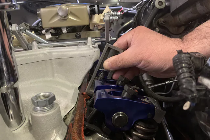 We were pleasantly surprised at the amount of clearance we had between the hood and the throttle bodies after checking with some soft putty. Even with the air filter installed, we have no worries of making contact with the underside of the hood under acceleration. One area that did require some fabrication was building a linkage from the pedal arm to the throttle linkage on the intake.