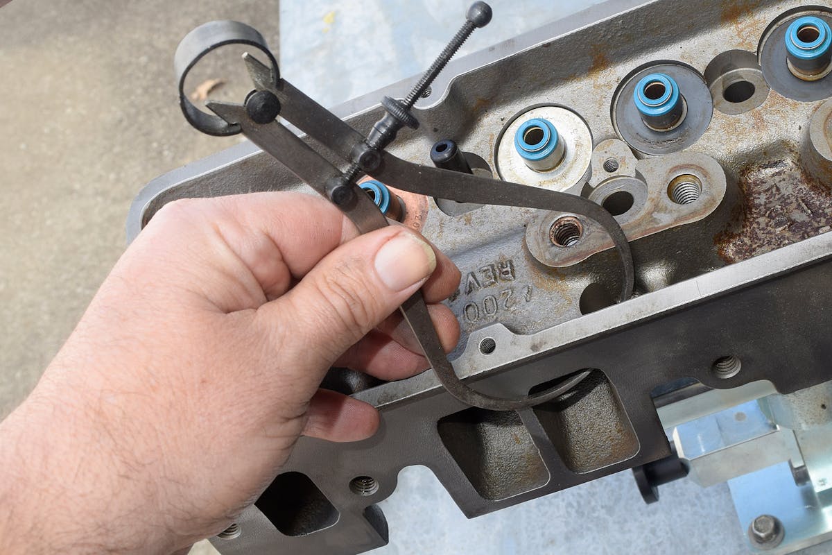 When performing any work around the valve seat area, it is extremely wise to avoid grinding near the valve seats and possibly damaging the seat surface. On our current head project, we planned for a thorough hot tank cleaning and new valve seats following our porting job.