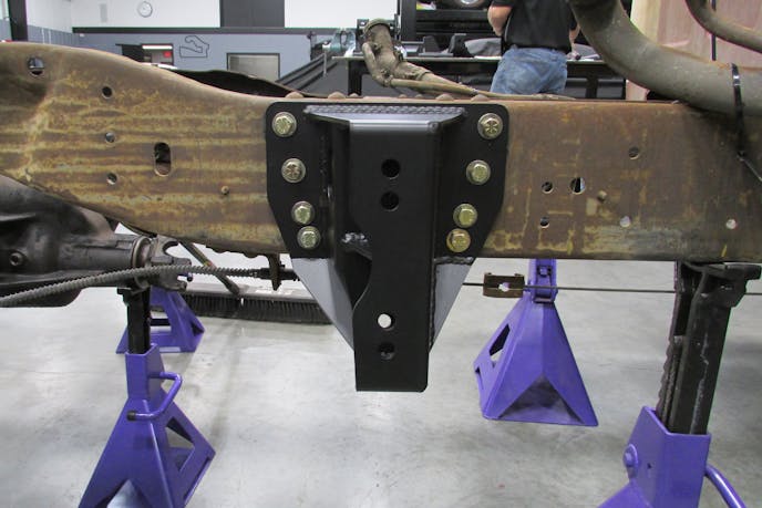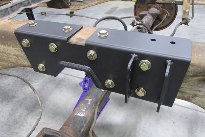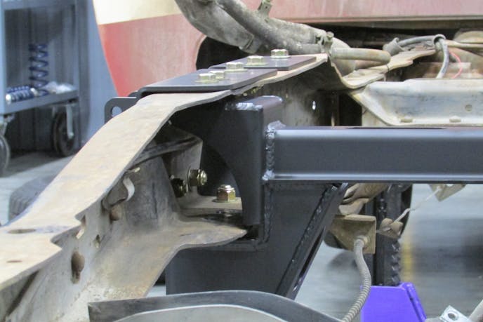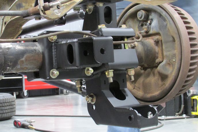 As for that unique C-notch plate that comes with each kit, Detroit Speed has engineered it to create a gain of 2 1/8 inches of jounce travel past the original frame rail surface. An integrated, progressive jounce bumper controls final axle travel.