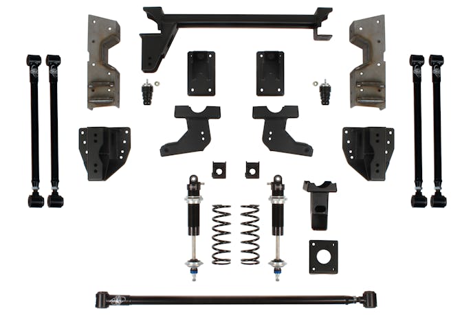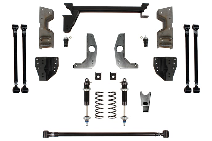 Meanwhile, Detroit Speed’s patented Swivel-Links rely on a high-durometer bushing to achieve a ride that is equal parts comfortable and capable. As for the kit’s coilover shocks, each setup uses a monoball design at both upper and lower mounts. The entire kit utilizes Grade-8 zinc-plated fasteners.