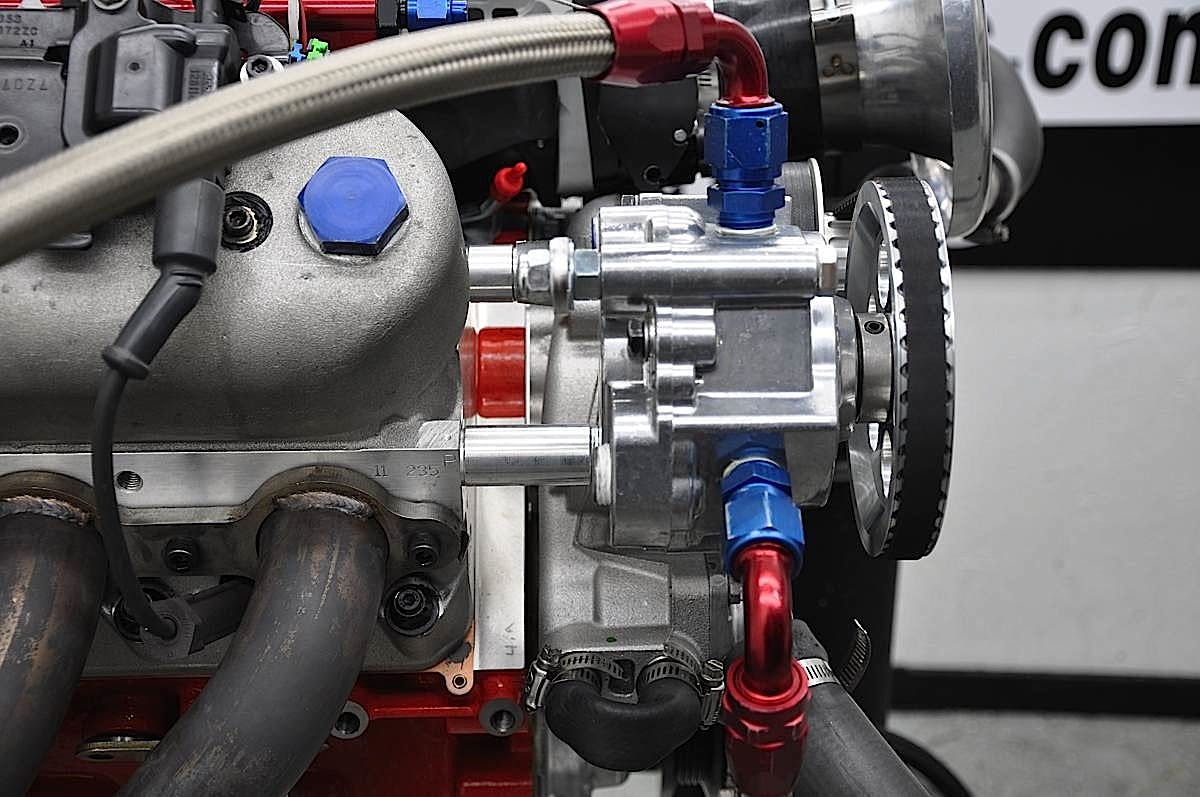 The GZ Motorsports Sportsman vacuum pump looks right at home on this high-tech small-block. It bolts on with no modifications to the factory GM accessories or brackets, making it suitable for installation by the home mechanic.