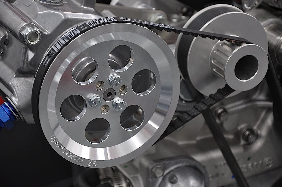 An aluminum manually adjustable tensioner pulley mount is available as an option with either kit. Zucco recommends this upgrade for applications that will see 7,000 RPM or greater.