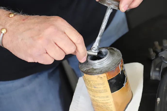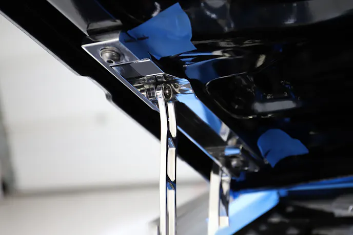 There are only four retaining bolts for each of our Chevelle’s hood hinges, two in the hood and two holding the hinge to the inner fender. While a relatively simple list of fasteners, there are a few steps that help ensure success. The supplied bolts are stainless, and it is imperative to use anti-seize on the threads to prevent galling.