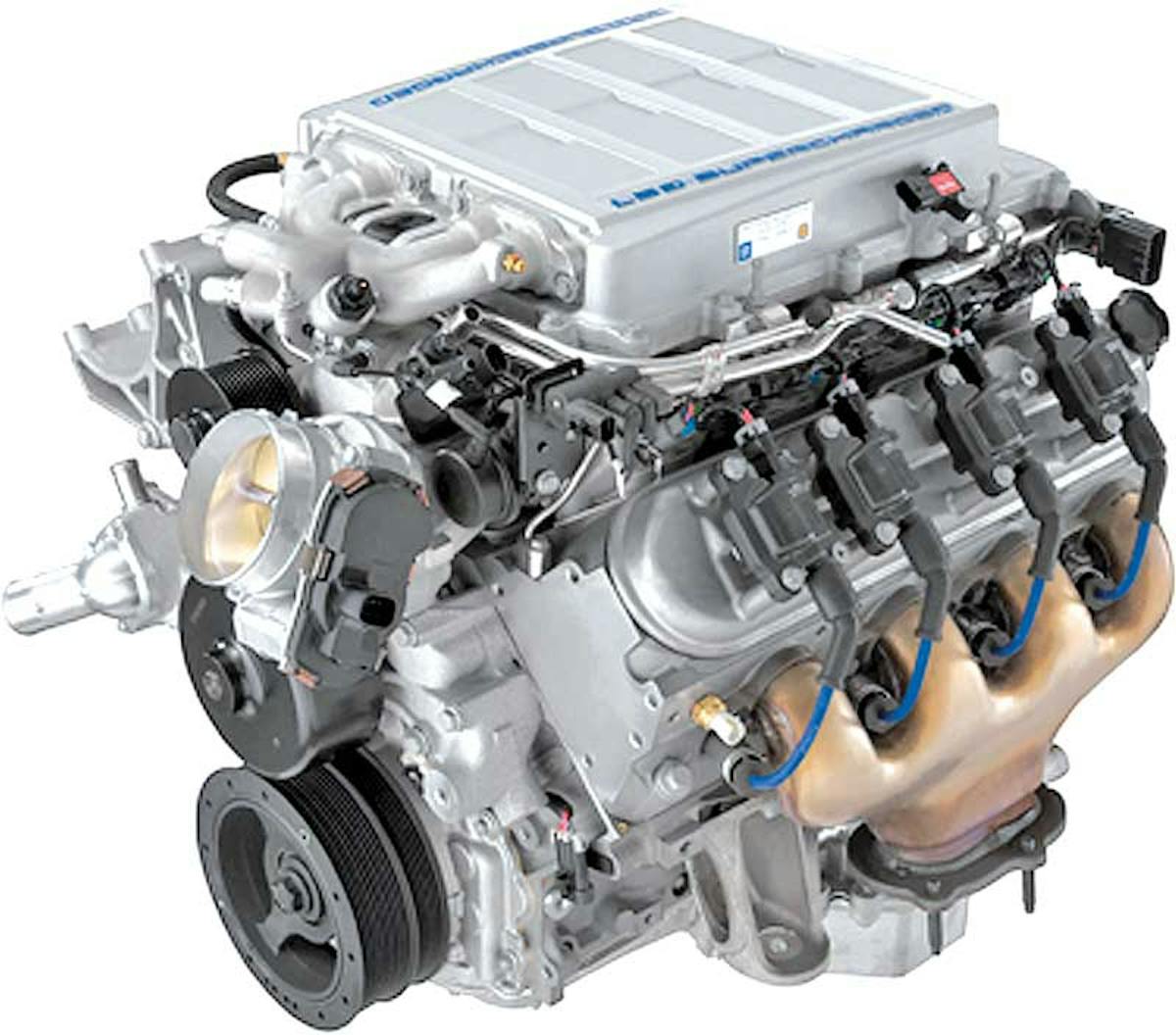 - LS9— The LS9 is basically a beefed-up, more potent version of the LSA. Featuring forged aluminum pistons, forged titanium connecting rods and a forged steel crankshaft, the bottom end is nearly bullet proof. It also features a dry-sump oiling system, ideal for extreme handling duties and also includes oil squirters for cooling the bottoms of the pistons to prevent hot spots and detonation under boost. Induction duties are handled by a 2.3-liter TVS supercharger putting out 10.5 psi breathing into high-flow heads stuffed with titanium valves on the intake and sodium filled valves on the exhaust. The LS9 also offers a substantially more aggressive camshaft that helps boost (pun intended) output to 638 horsepower. While the LS9 is a potent power producer, its quality is reflected in its price tag.