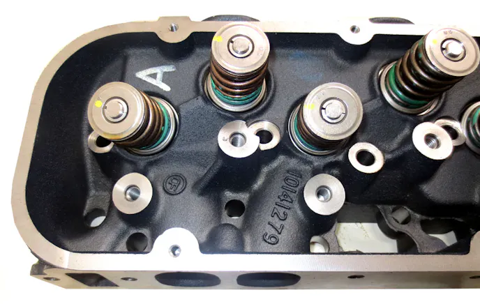 Most production big-block heads have similar characteristics. These include 7/16-inch rocker-arm studs (except Gen V and Gen VI) and a seven-bolt valve cover pattern. The Gen V and VI heads used a non-adjustable rocker arm with 3/8-inch studs.