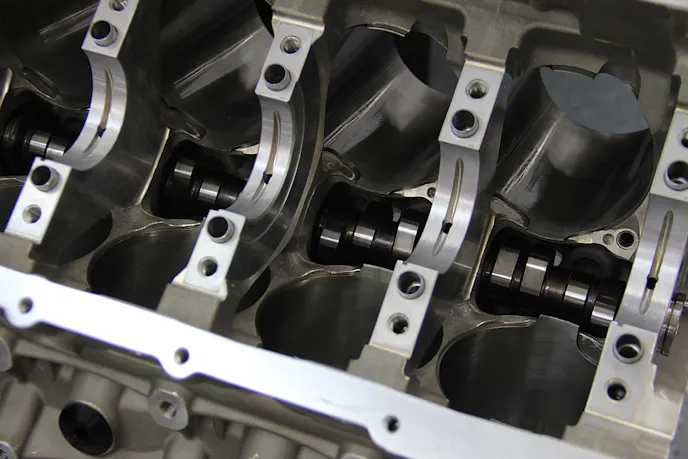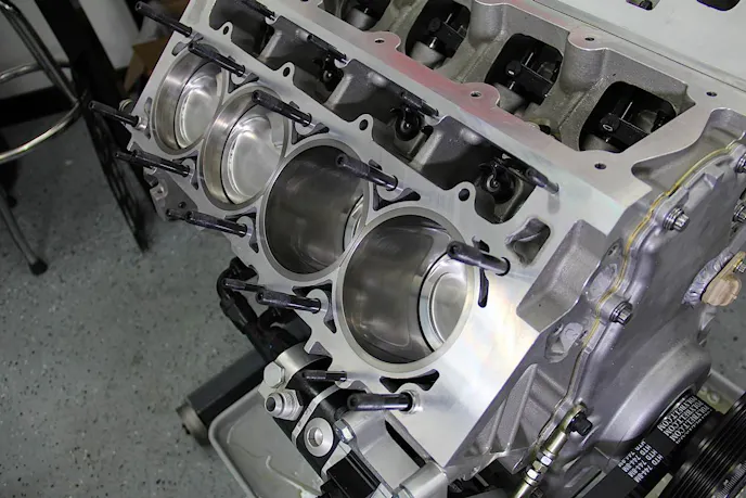 - 6 head-bolt design with full water jacket around the cylinders (based on LS7 design)